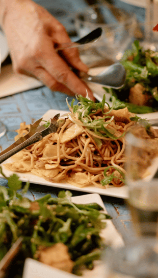 The evening’s menu was designed by Annie Elmore, Director of the Tom Douglas Hot Stove Society, with inspiration drawn from her Cambodian and Vietnamese heritage. Guests began with a warming course of Dungeness Egg Drop Soup, followed by a family-style dinner that encouraged sharing and connection. The meal concluded with a dessert and tea service featuring mango and coconut pudding with tapioca pearls.